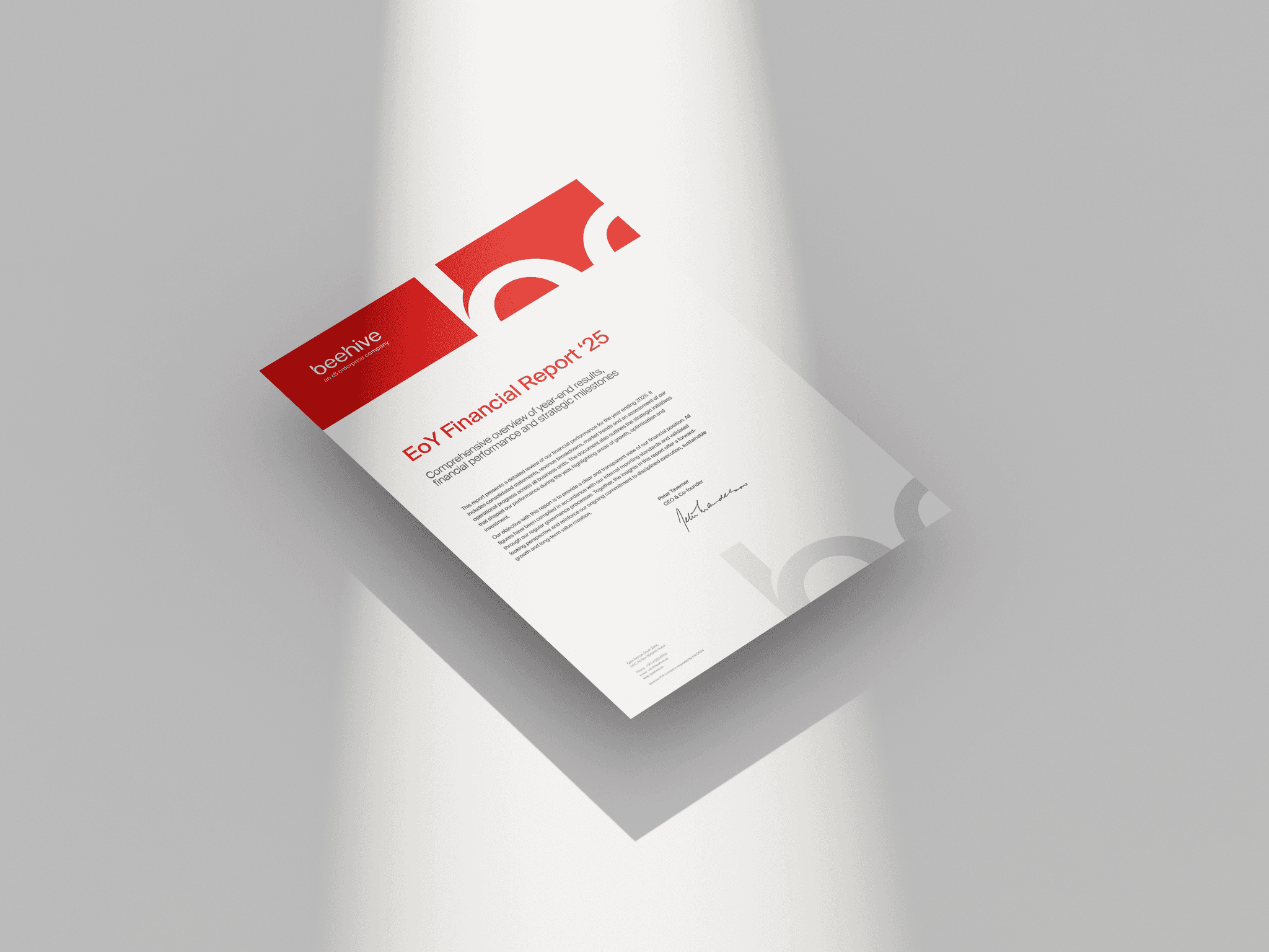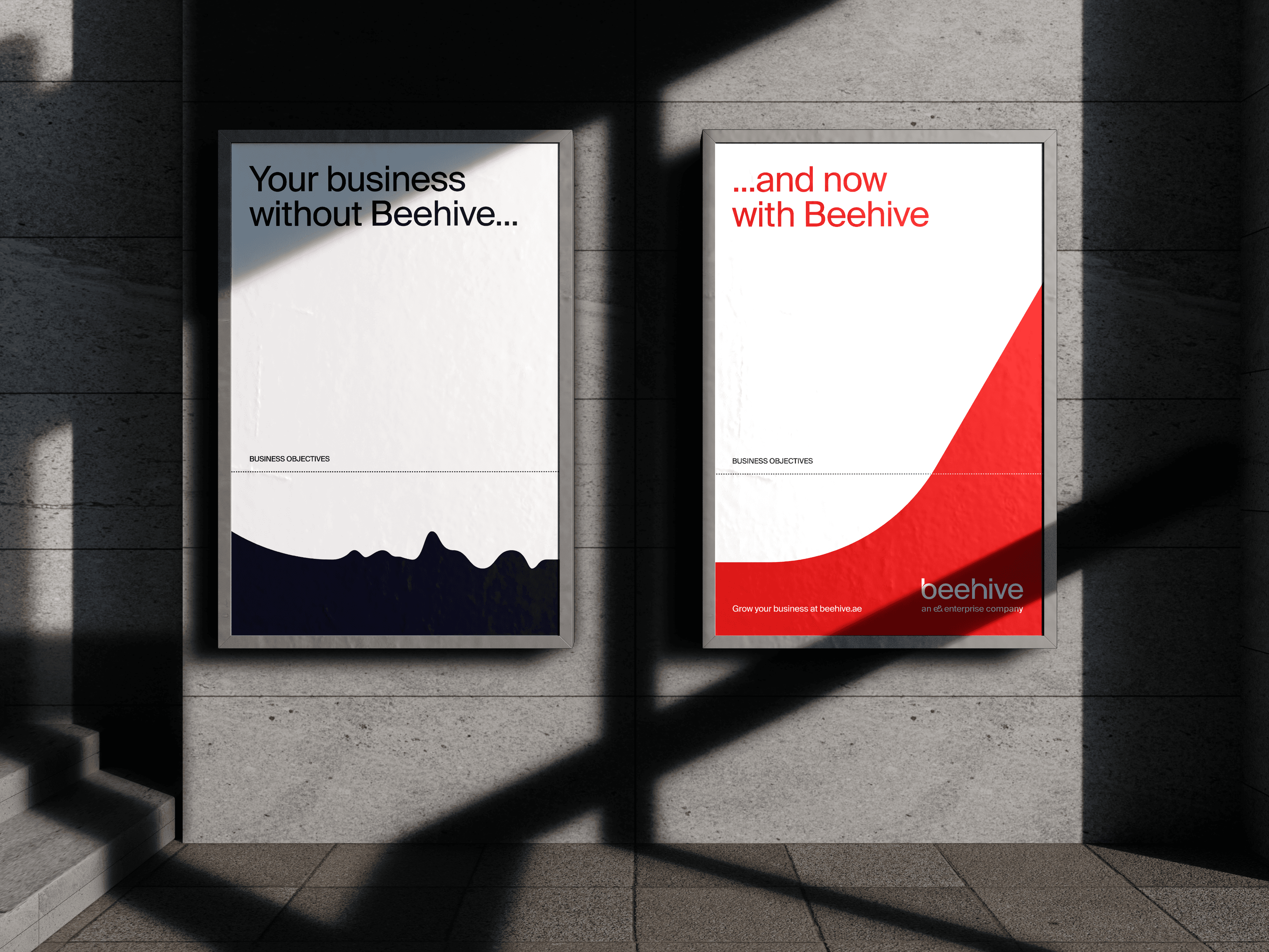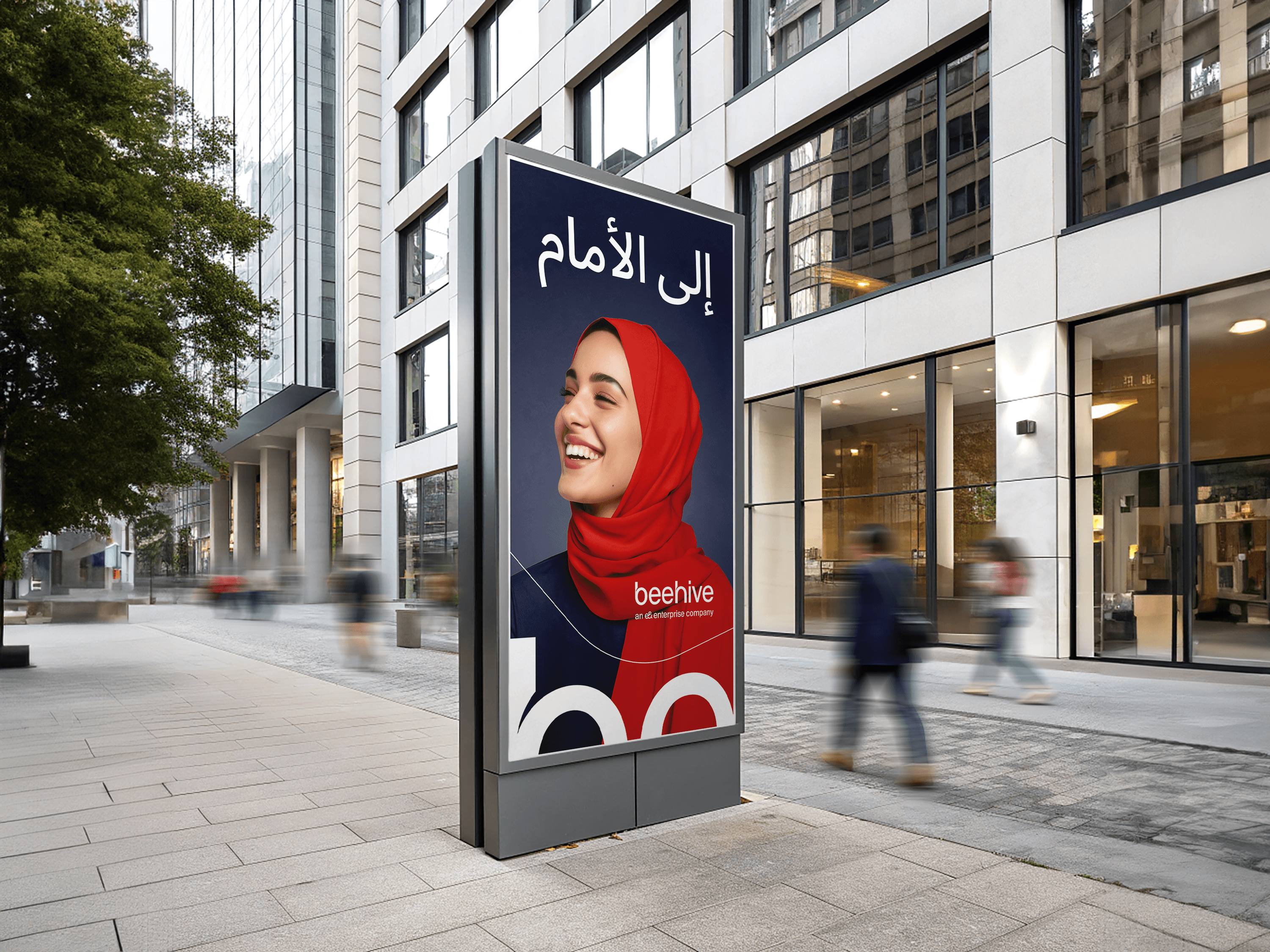 Operating on the fine line between a full brand redesign and a brand evolution, we chose to introduce a significant refresh while retaining key recognisable elements. This gave Beehive a sense of continuity and 'onward motion' rather than a disruptive shift. We fully redesigned the logo to reflect the company’s momentum and its stronger position in the industry, while keeping the distinctive red and the Suisse Int’l typography as a bridge between Beehive and the broader e& brand family. By updating the colour palette and expanding the graphical system, we elevated the brand into a more mature, confident and premium territory. The new system provides a richer and more versatile visual language that scales across platforms and supports Beehive’s expansion from the UAE into Oman and Saudi Arabia.