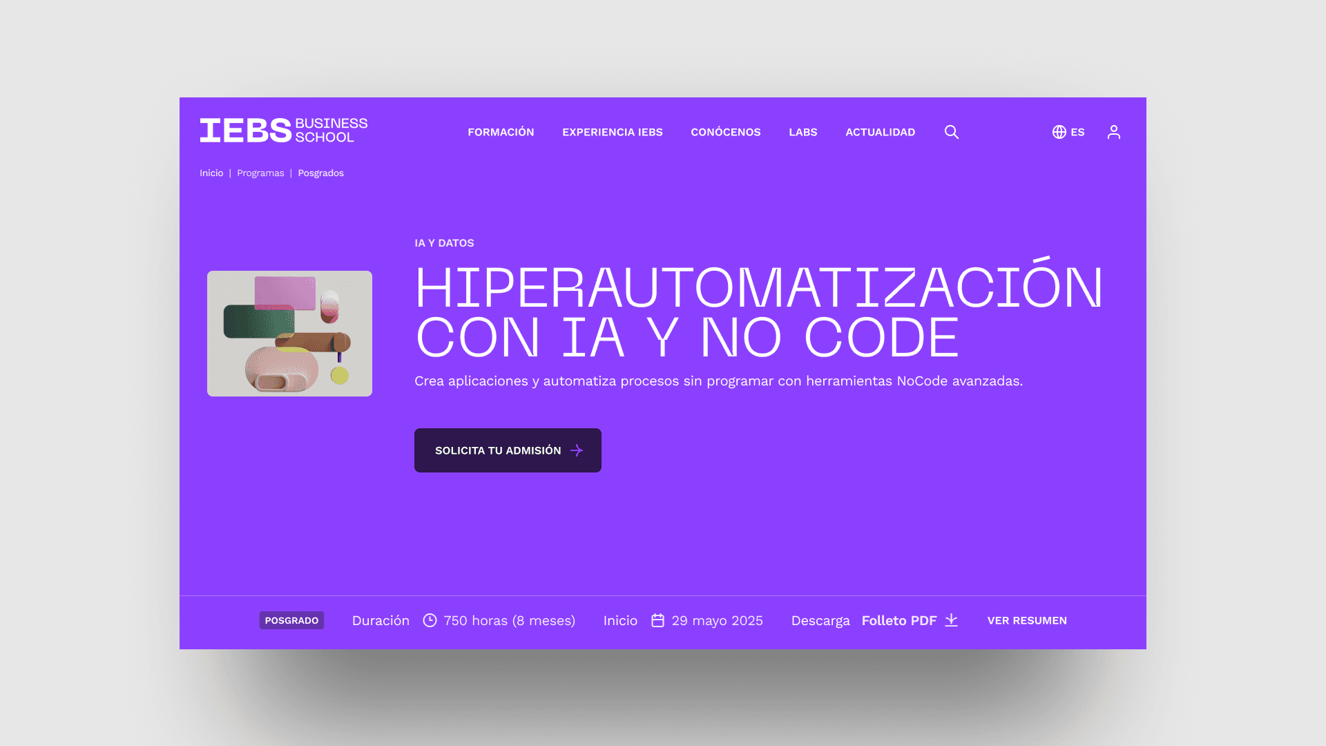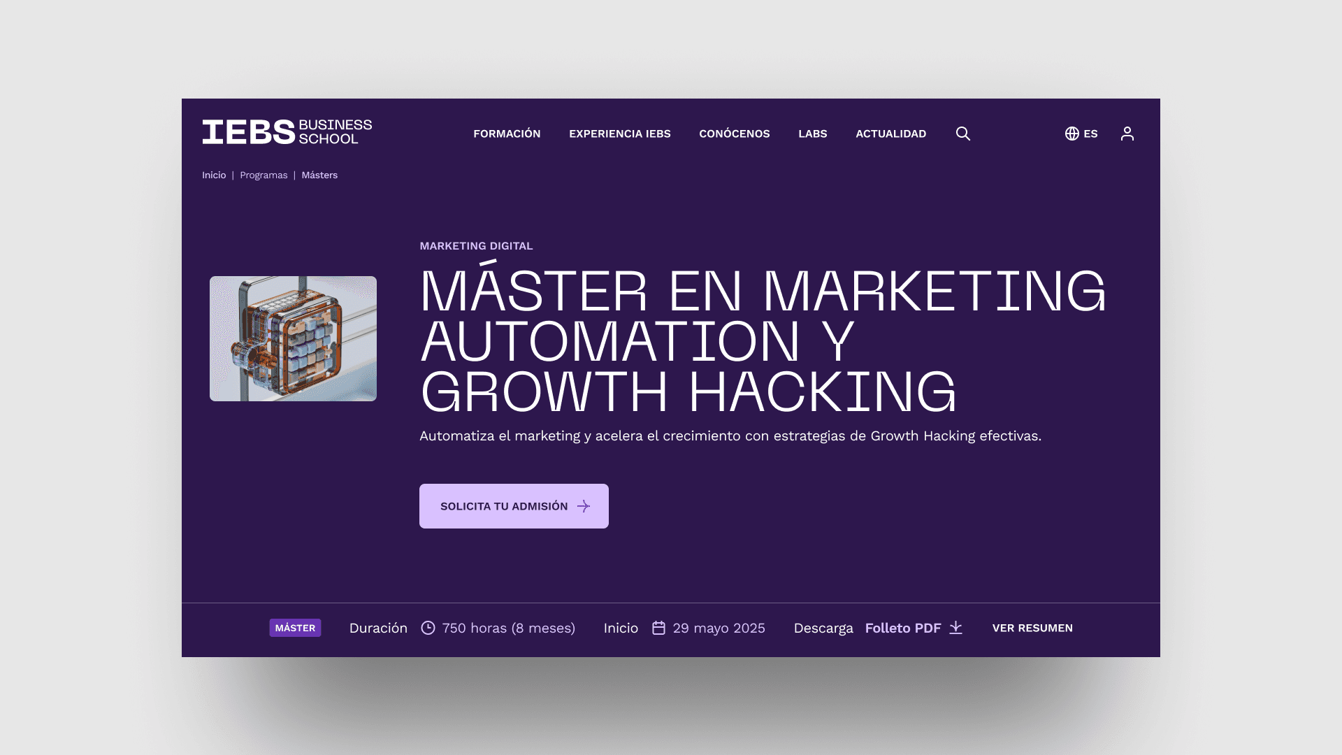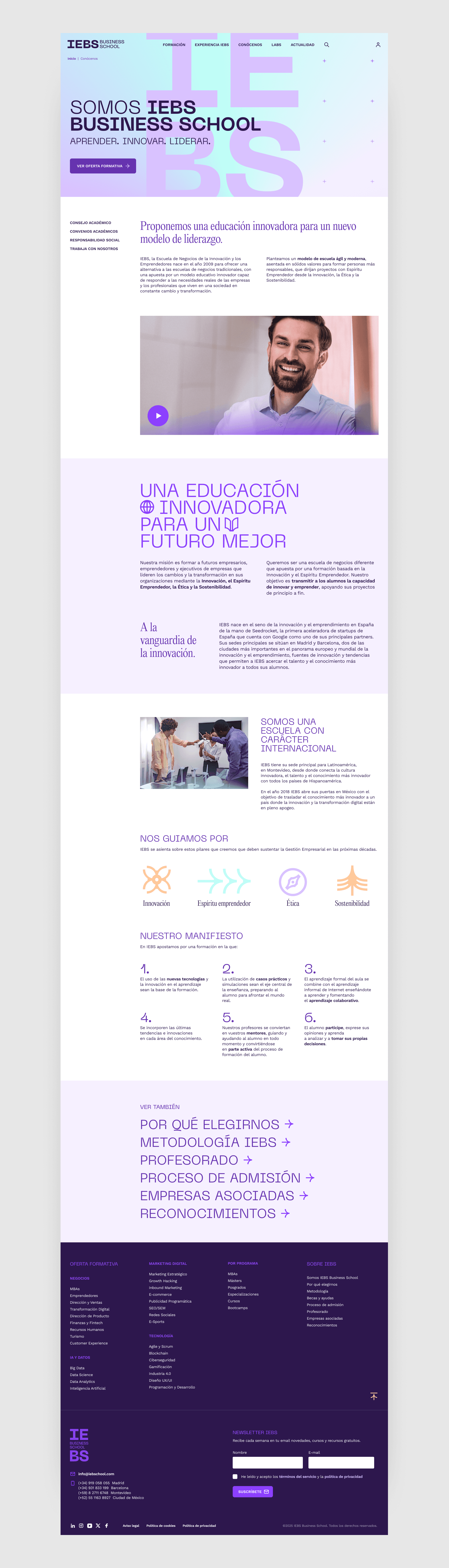 IEBS Business School is a pioneer in digital executive education for the Spanish-speaking market. For over fifteen years, the institution has led the transformation of online learning by placing innovation, relevance and applied methodology at the core of its programs. With more than 200,000 alumni across Spain and Latin America, IEBS has established itself as a leading reference in executive education, proving that excellence and accessibility can coexist. Its forward-thinking approach continues to shape the next generation of entrepreneurs and digital leaders. Following the success of the brand redesign led by North of Now, IEBS turned to us once again to reimagine its core sales platform and user experience. This collaboration demonstrates how strategic design and innovation can elevate a digital platform from functional to transformational. By aligning brand, experience and business objectives, North of Now helped IEBS reinforce its leadership and accelerate growth in the competitive executive education landscape.