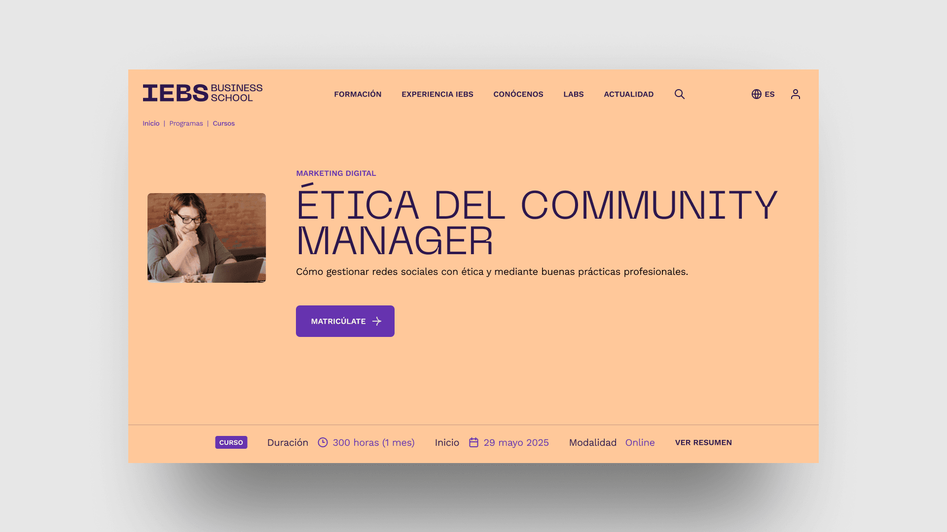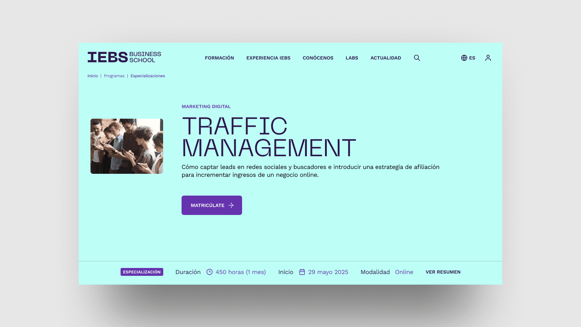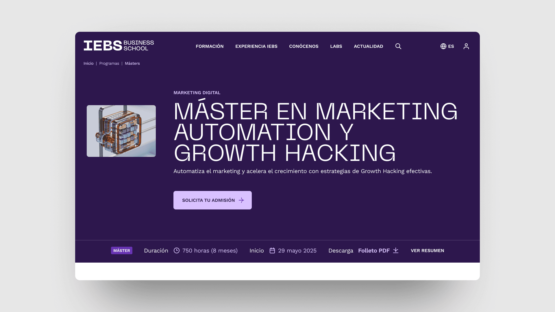 IEBS Business School is a pioneer in digital executive education for the Spanish-speaking market. For over fifteen years, the institution has led the transformation of online learning by placing innovation, relevance and applied methodology at the core of its programs. With more than 200,000 alumni across Spain and Latin America, IEBS has established itself as a leading reference in executive education, proving that excellence and accessibility can coexist. Its forward-thinking approach continues to shape the next generation of entrepreneurs and digital leaders. Following the success of the brand redesign led by North of Now, IEBS turned to us once again to reimagine its core sales platform and user experience. This collaboration demonstrates how strategic design and innovation can elevate a digital platform from functional to transformational. By aligning brand, experience and business objectives, North of Now helped IEBS reinforce its leadership and accelerate growth in the competitive executive education landscape.