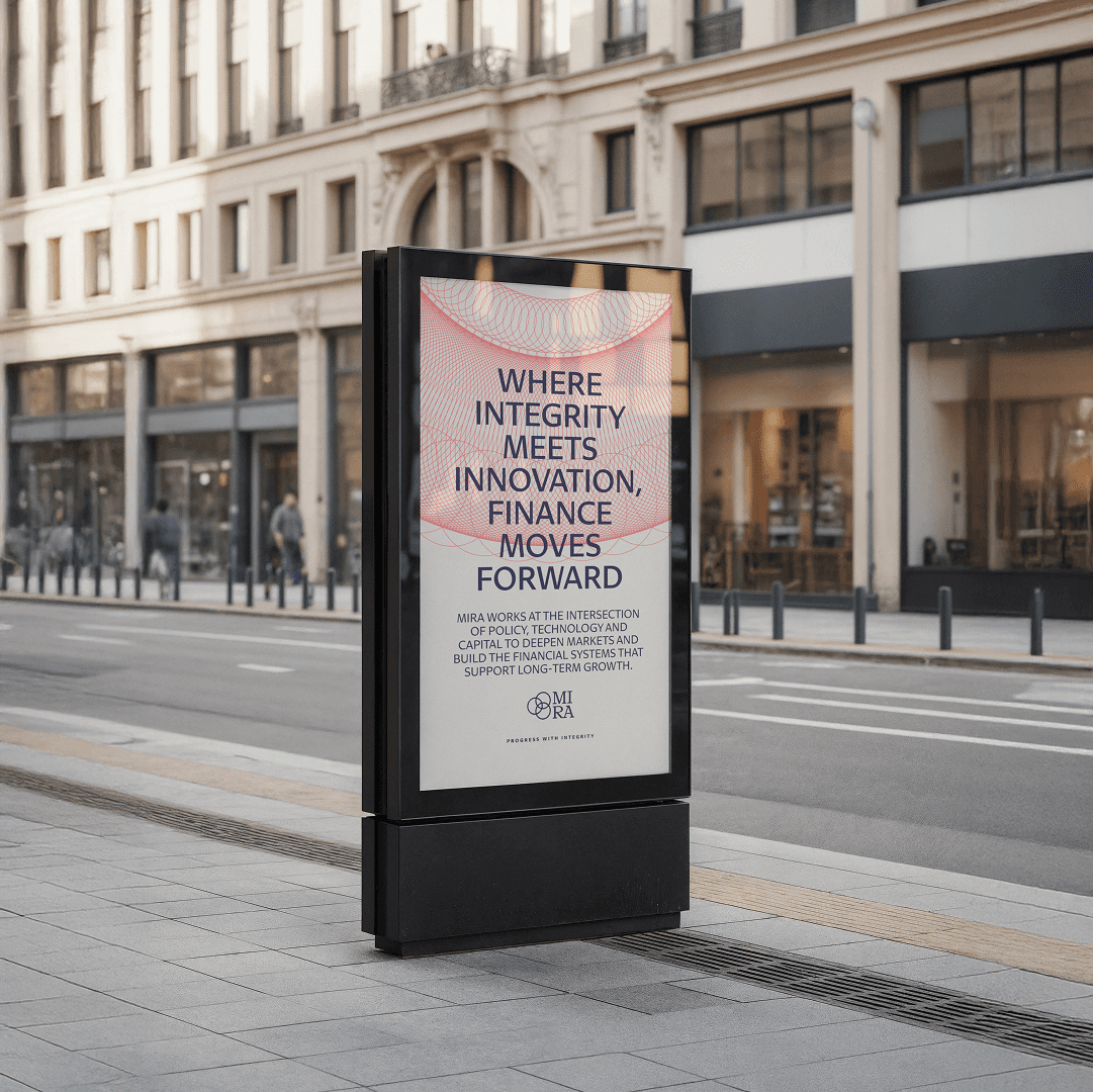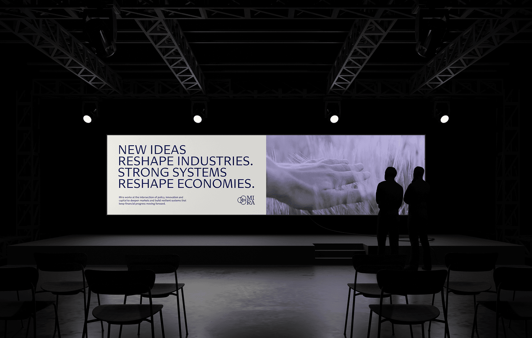 We developed a strategy designed to position Mira as a credible system-level actor from the outset, not as a single-issue player, but as a connector across technology, policy and capital. Working closely with the founders, we clarified Mira’s role as a bridge between domains that rarely align effectively. The strategy articulated how innovation could meet regulatory reality, how capital could flow productively into real-economy outcomes, and how policy could enable scale rather than constrain it. By grounding the brand in this connective role, we helped establish authority early, signalling institutional credibility, strategic depth and a clear mandate to operate where financial systems are shaped, not just where products are built.