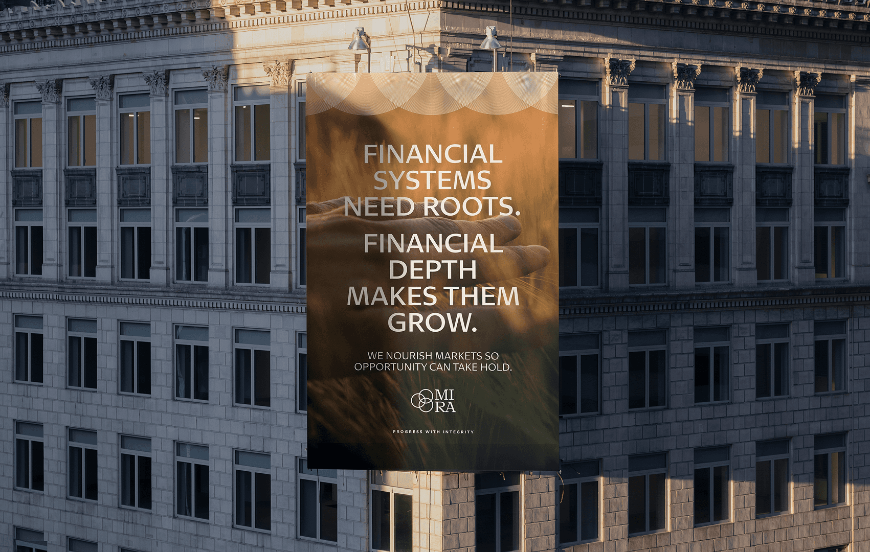 Mira operates at the intersection of regulation, innovation and capital. Its work spans advisory, infrastructure design and capital mobilisation, engaging audiences that range from governments and multilaterals to startups and investors. Our brief was to create a brand that could hold this complexity without becoming abstract or opaque. Mira needed to sound principled without being rigid, ambitious without exaggeration, and expert without distancing itself from the people and systems it serves. The challenge was not visibility alone, but credibility at scale.